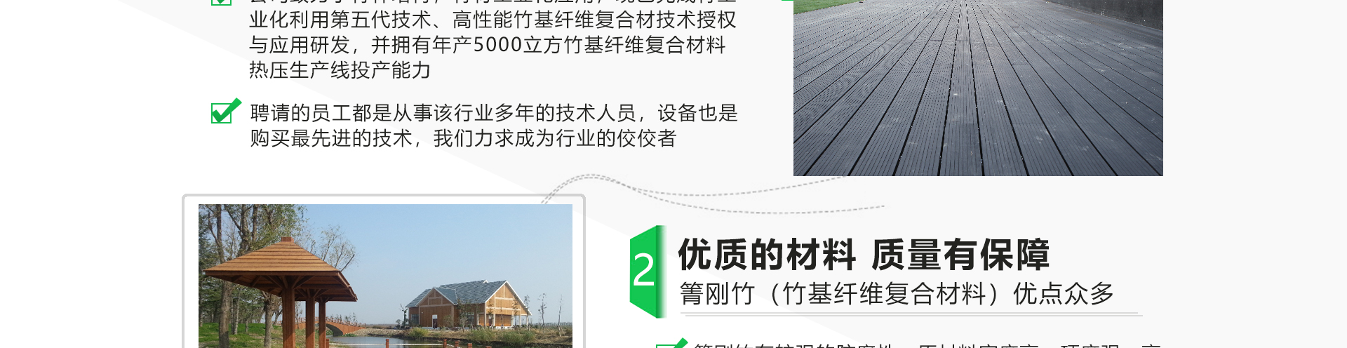 宣城宏宇竹業(yè)有限公司位于“華夏毛竹首鎮(zhèn)”的安徽省宣城市涇縣蔡村鎮(zhèn),公司致力于竹材工業(yè)化應(yīng)用與研發(fā),已完成竹工業(yè)化利用第五代技術(shù)-竹基纖維復(fù)合材技術(shù)應(yīng)用研發(fā),并獲得2015年度國家科技進(jìn)步獎二等獎。公司擁有行業(yè)幅面3850*1320mm的5400噸壓力的20層熱壓機(jī),可以直接壓制3850*1180*52的坯板,具備年產(chǎn)10000立方米的生產(chǎn)能力。宏宇竹業(yè)以“領(lǐng)導(dǎo)竹材恒久價值”為己任,以匠心的工藝,銳意進(jìn)取的管理團(tuán)隊(duì)打造一個產(chǎn)品多樣化、市場多元化的科技型企業(yè)。公司從成立之初一直重視品牌建設(shè),公司注冊商標(biāo)“箐剛“竹,致力打造戶外竹材優(yōu)異品牌,讓宏宇竹業(yè)深入每一個消費(fèi)者的心。